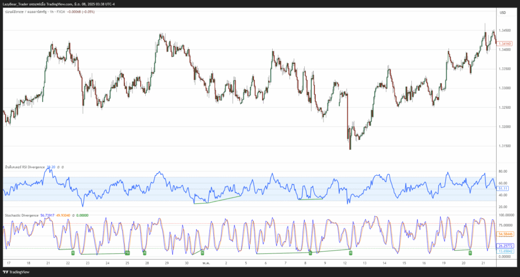 Divergence คือสภาวะที่ทิศทางของราคาสินทรัพย์ขัดแย้งกับทิศทางของอินดิเคเตอร์ทางเทคนิค ซึ่งมักเป็นอินดิเคเตอร์ประเภท Momentum Oscillator (เช่น RSI, MACD, Stochastics) สัญญาณนี้บ่งชี้ว่าโมเมนตัมที่สนับสนุนแนวโน้มปัจจุบันกำลังอ่อนแรงลง ซึ่งอาจเป็นสัญญาณเตือนล่วงหน้าถึงการพักตัวหรือการกลับตัวของแนวโน้ม แม้จะเป็นสัญญาณชี้นำ (Leading Indicator) แต่ก็ไม่ได้ทำนายอนาคตได้อย่างสมบูรณ์แบบ จึงจำเป็นต้องใช้ร่วมกับการยืนยันอื่น ๆ เสมอ